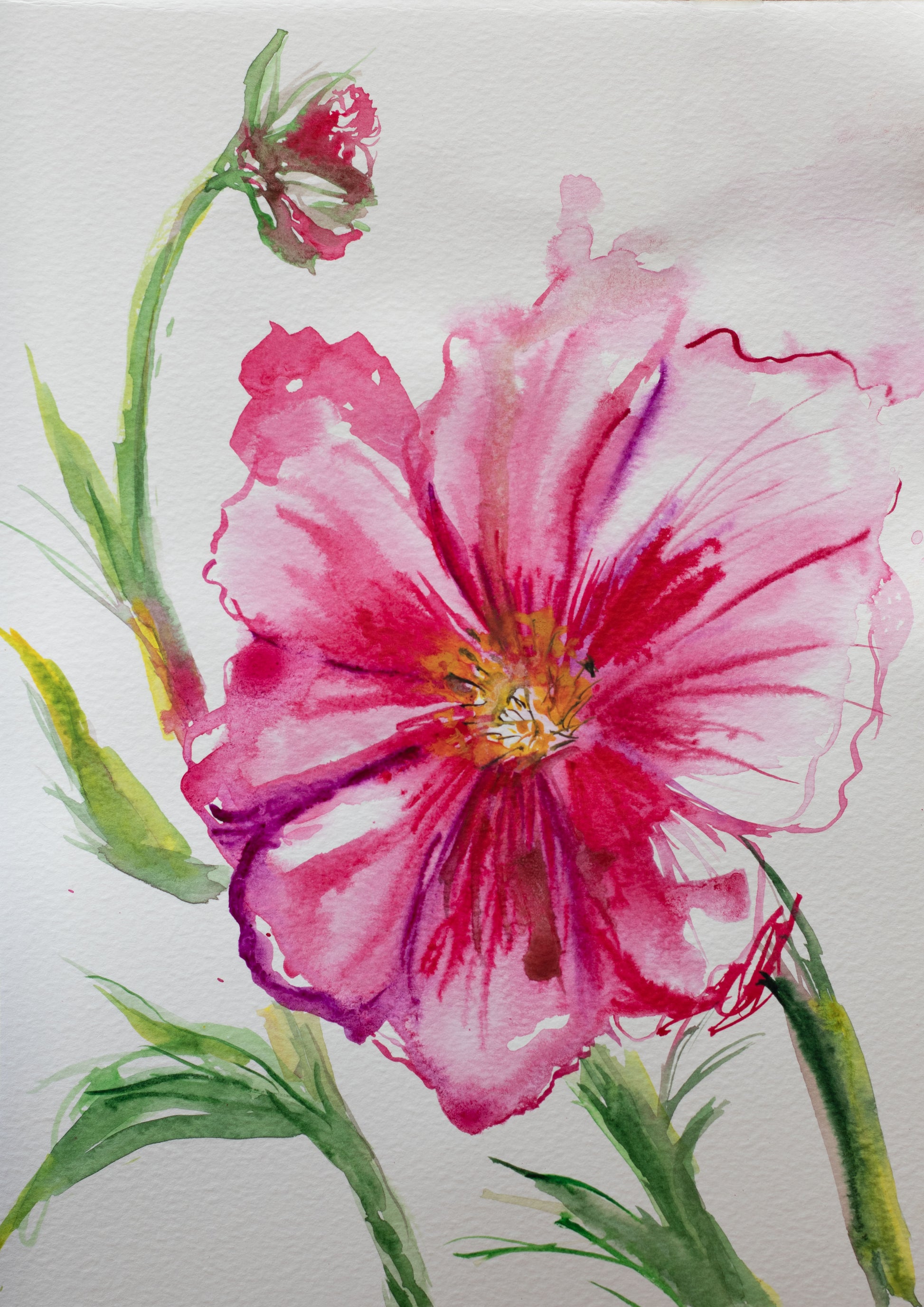 This floral watercolor painting offers a delicate blend of colors that capture the natural beauty and subtle details of blooming flowers. Crafted with expert technique, the artwork brings a sense of calm and refined elegance to any space, making it an ideal choice for enhancing interior decor with a touch of artistic sophistication.