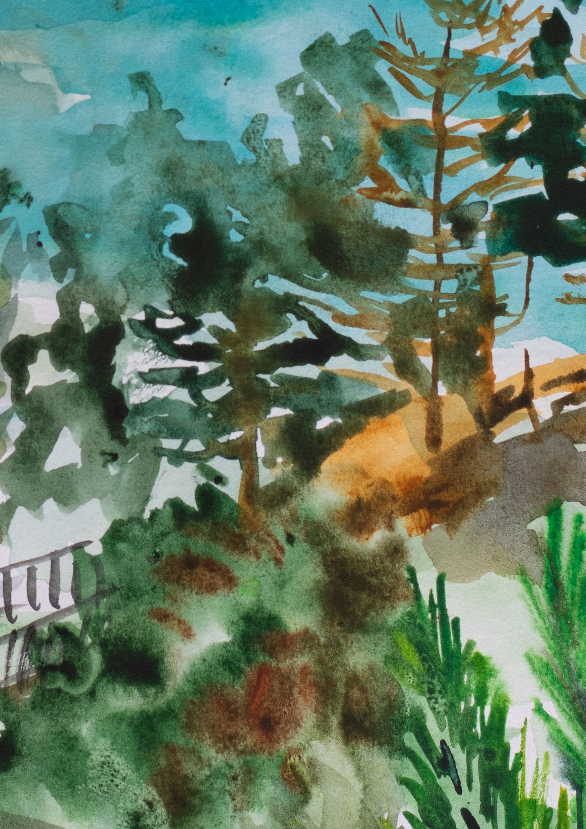 Experience the serene beauty of nature captured in this expert watercolor painting, featuring a charming house nestled within a tranquil forest. The artwork’s delicate brushstrokes and subtle color transitions evoke a peaceful, intimate atmosphere, making it a perfect piece to enhance any space with a touch of natural elegance and calm.