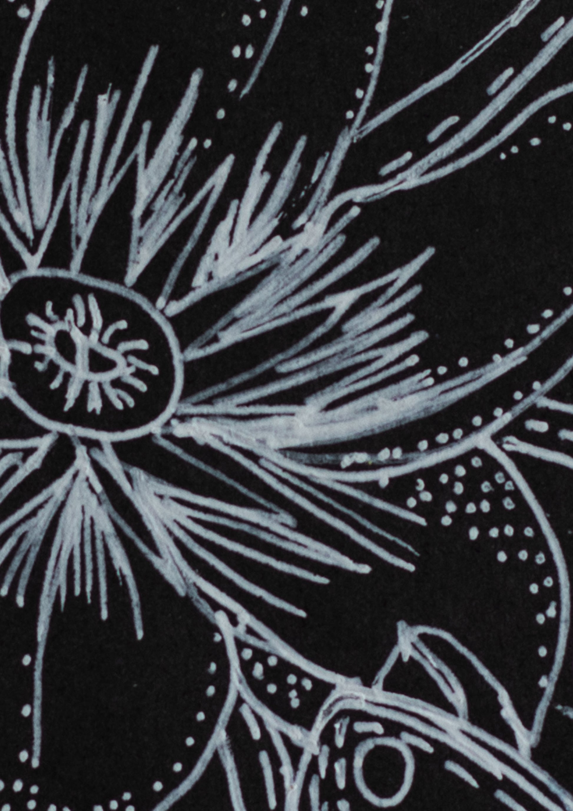 "Celestial Garden" offers a striking creative experience using black paper and a white pen to craft luminous, high-contrast drawings. This medium highlights intricate details and fine lines, allowing artists to explore shading and texture with precision. Ideal for professionals seeking to bring depth and brilliance to their work, this approach enhances visual impact while encouraging a mastery of light and shadow in monochromatic art.