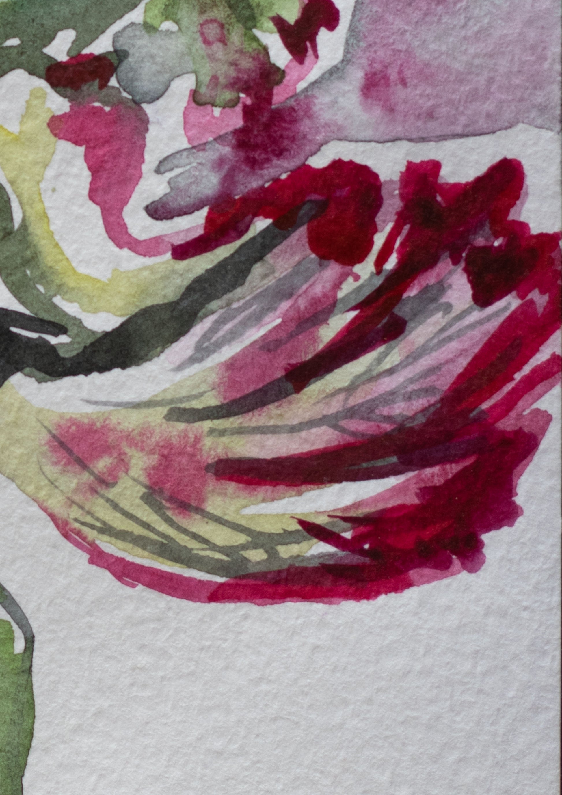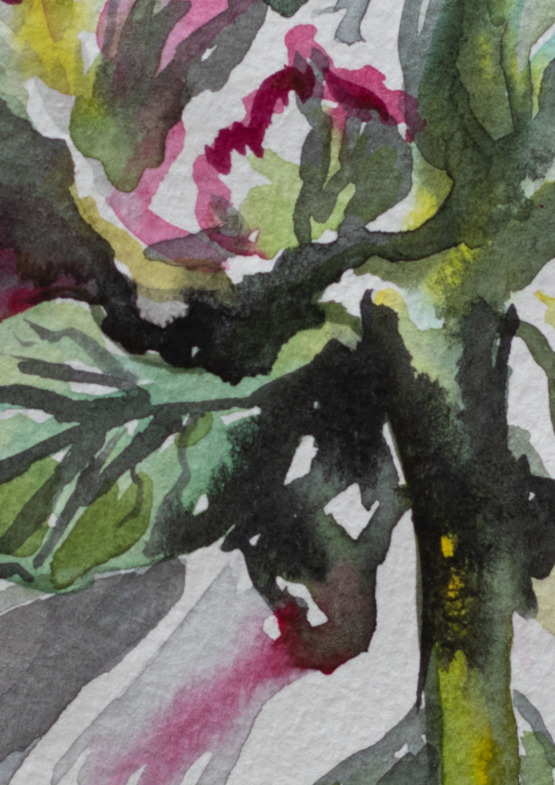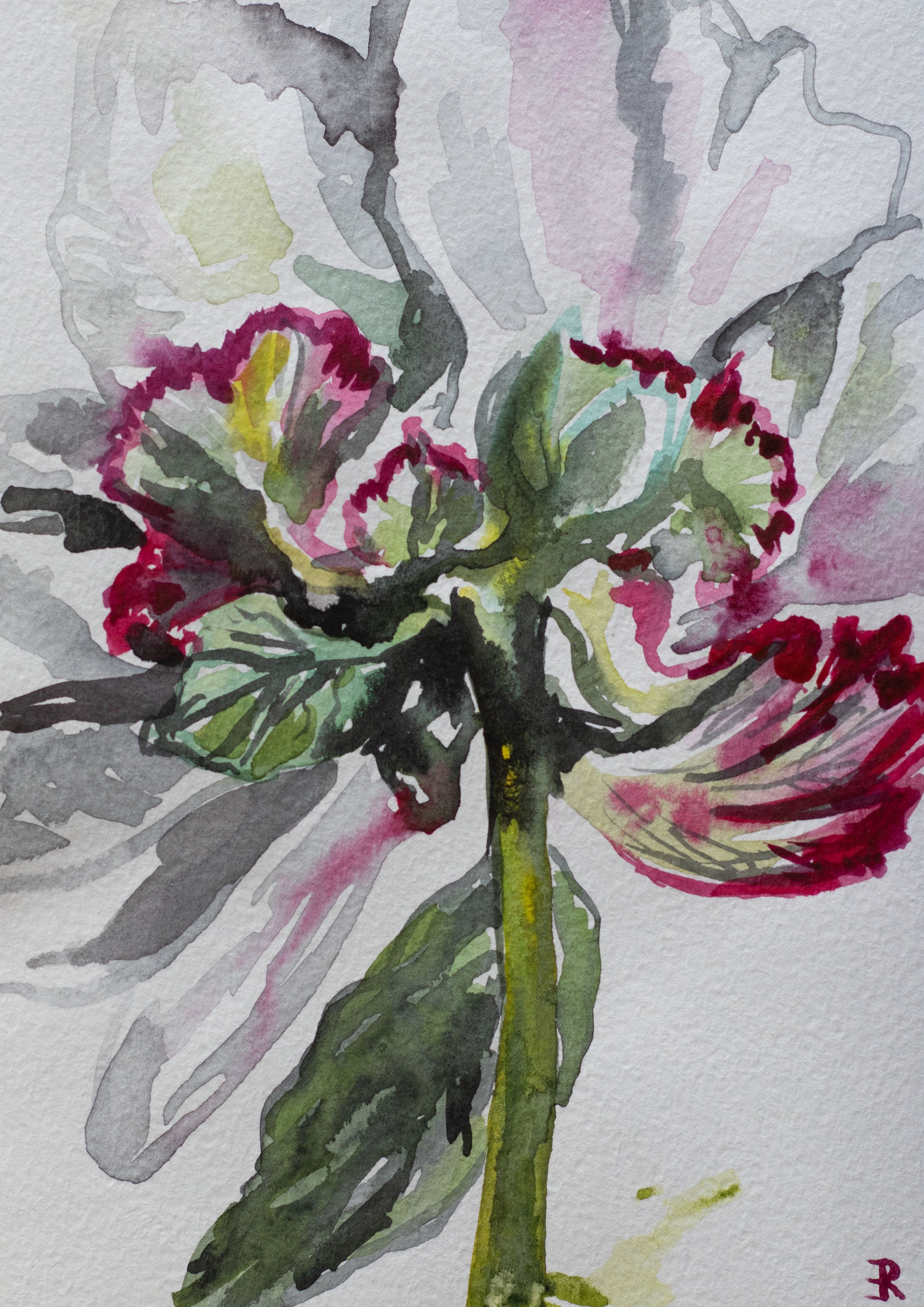 "Underside Grace" captures the delicate beauty of a flower through the subtle transparency and fluidity of watercolor painting. This artwork reveals the intricate details beneath the petals, inviting viewers to appreciate nature’s understated elegance from a unique perspective. Perfect for those who value botanical artistry with an expert touch, it enhances any space with a serene and refined aesthetic.